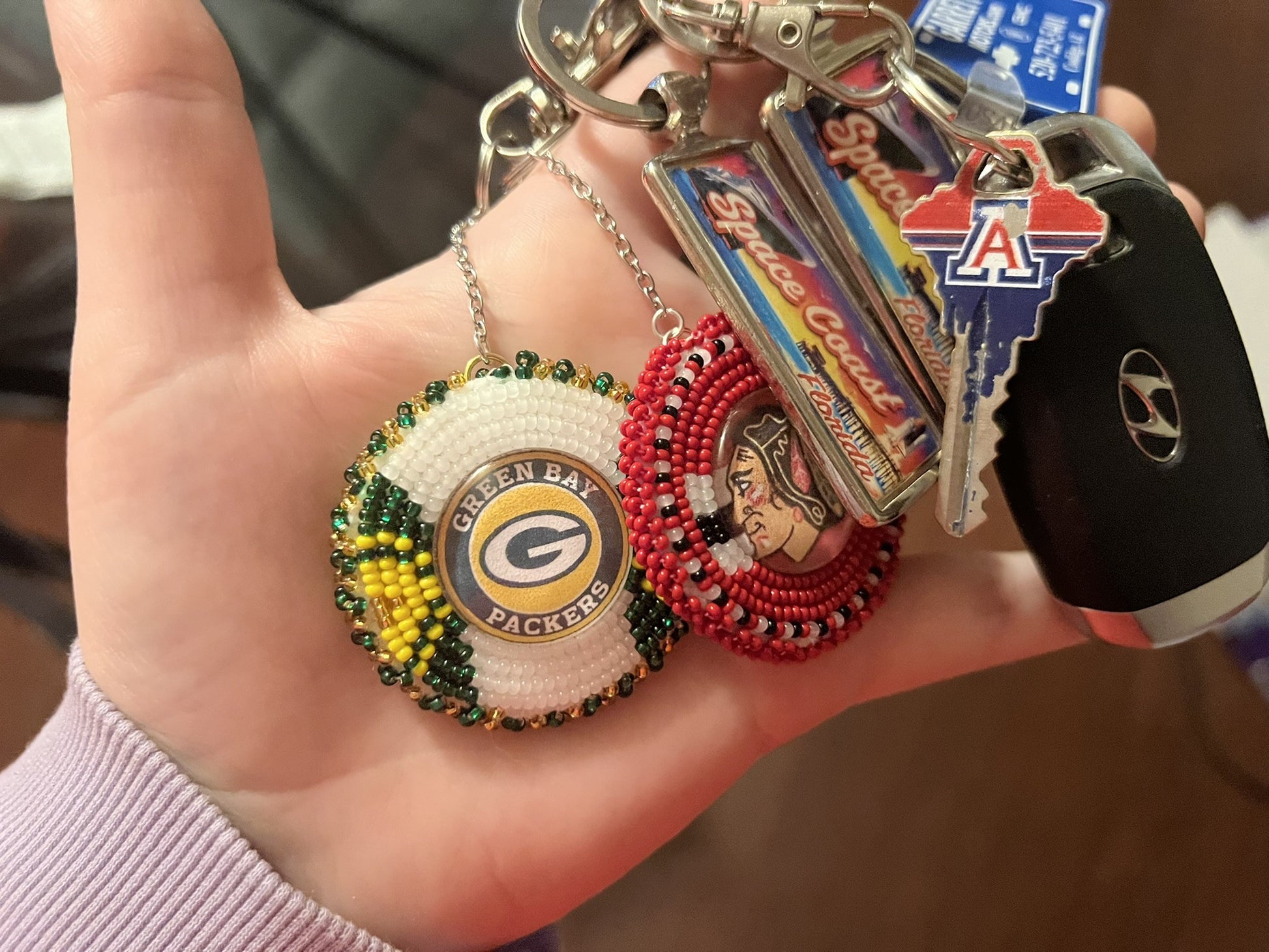 Have a fav sports team or a family/pet picture you'd like to have on a keychain, look no further! Send over an email with the specific picture/colors you would like! These will be set at $25 plus shipping for keychain orders - 1 inch cabs -